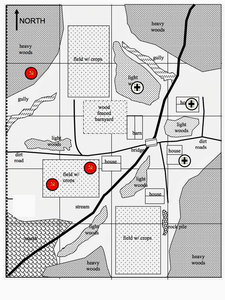 ReplyDeleteI very much like your maps! Most attack/defense games i've played with other rules give the attacker a 2:1 or even 3:1 superiority in numbers for them to have an even chance of success. T34/85's leading the attack with infantry following would have helped greatly. Infantry alone attacking undamaged, dug in defenders was suicide....Just my opinion.