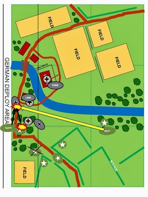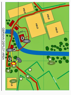 It was a conplicated scenario to defend. The River divided scenario into two smaller scenarios. It was easy for the attackers to concentrate all markers in one side and tried to gain enemy edge.