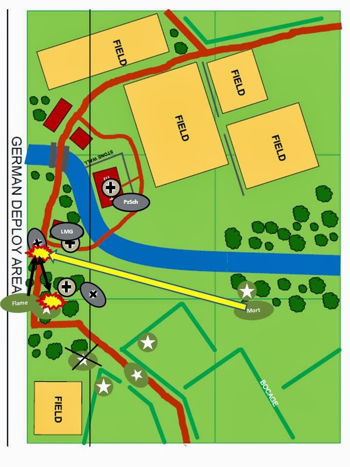 a flamethrower team plus a pre-game barrage; the latter was a good choice as it
