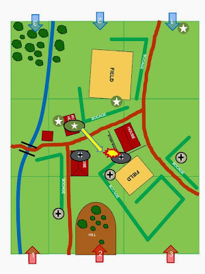 brought my first squad on the table and occupy the house on the left; but when