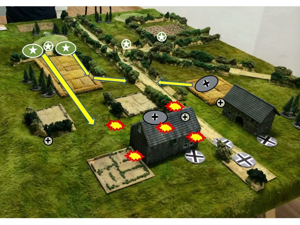 At this stage we use our only Chain of Command of Dice to trigger an ambush